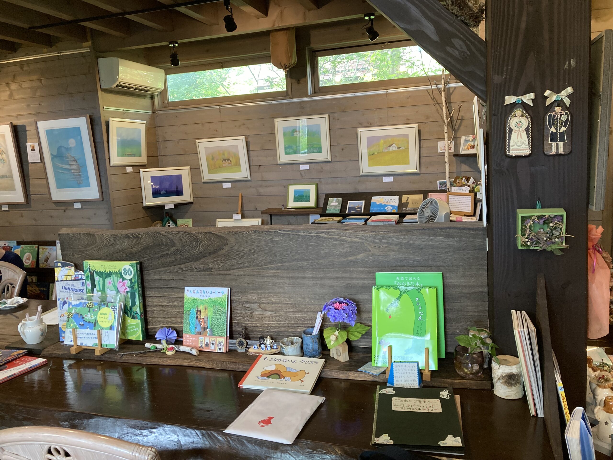 展示作品は海外のものが多かったのですが、この長机の隣にある販売コーナーでは日本の話題作もゲットできます。ラインナップを見るとどれも優しい作品で、館主さんのお人柄が現れているようでした。