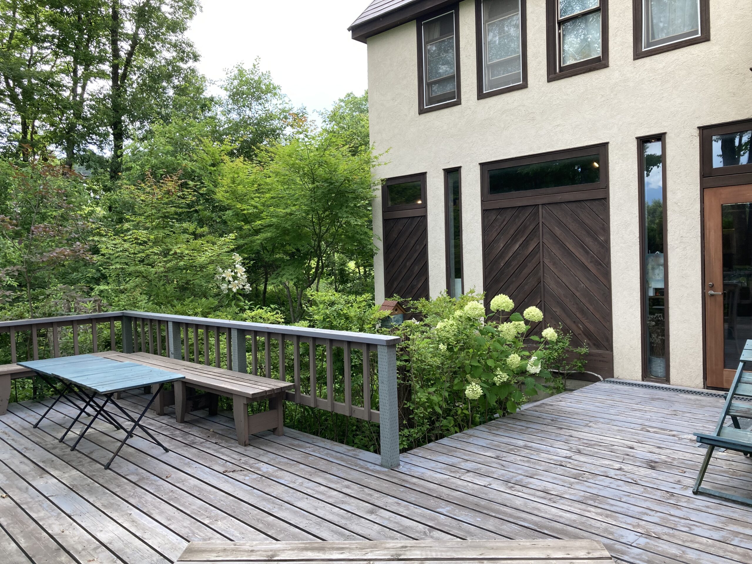 くつろげるデッキも有り。こんな別荘に憧れますね〜!
